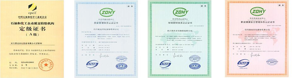 國光視產(chǎn)品為企業(yè)生命。公司通過了ISO19001質(zhì)量管理體系認(rèn)證,對產(chǎn)品生產(chǎn)流程進(jìn)行嚴(yán)格的質(zhì)量管理。國光質(zhì)管部是國家石油和化學(xué)工業(yè)協(xié)會(huì)認(rèn)定的“A級(jí)質(zhì)檢機(jī)構(gòu)”,配備了Agilent1100、1200A、1200B、1200C液相色譜儀、Agilent 6820氣相色譜儀、原子吸收分光光度計(jì)、原子熒光光譜儀等現(xiàn)代化的檢驗(yàn)檢測設(shè)備。同時(shí)強(qiáng)化企業(yè)標(biāo)準(zhǔn)化建設(shè)和計(jì)量管理以確保產(chǎn)品質(zhì)量。 |