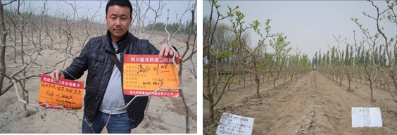 2014年5月,在新疆阿克蘇溫宿紅旗坡杜明超,陸地灰棗園使用國(guó)光優(yōu)豐1000倍+國(guó)光稀施美500倍,在萌芽期全株噴施一次,棗樹(shù)樹(shù)體抗凍能力增強(qiáng),提前萌芽3—5天,芽壯出芽整齊。