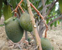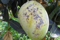 發(fā)病規(guī)律:病原為半知菌亞門擬莖點(Phomopsis mangiferae)和色二孢霉(Diplodia mangiferae)病菌均以菌絲體和子實體(分孢器)在病株和病殘體上存活。氣溫適宜時,分孢器涌出大量分生孢子,借風雨傳播,主要從傷口侵入致病。溫暖多濕有利于病菌繁殖傳播侵染,植株、果實病、蟲傷口多樹勢哀落的果實發(fā)病較重。