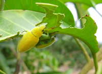 癥狀:芒果果肉象以幼蟲蛀食芒果果肉,在果肉內(nèi)形成不規(guī)則的縱橫蛀道,使果內(nèi)充滿蟲糞,不堪食用,該蟲不危害果核;芒果果核象以幼蟲蛀食芒果果核,使被害的幼果大量脫落,嚴重影響產(chǎn)量,甚至使全園失收;芒果剪葉象則以成蟲取食嫩葉,并在嫩葉上產(chǎn)卵,將葉片從近基部咬斷,造成大量落葉,并在嫩葉上產(chǎn)卵,將葉片從近基部咬斷,造成大量落葉,嚴重時使樹冠僅剩下無葉的光禿嫩梢,對樹勢及產(chǎn)量均有極大影響。