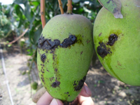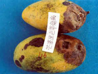 發(fā)病規(guī)律:病原為半知菌亞的擬莖點霉(Phompsis mangiferae Ajmad)、小穴殼菌(Dothiorella dominica)和球二孢菌(Botryodiplodia theobromae)以擬莖點霉為多見。病菌均以菌絲體和分孢器在病株和病殘物上存活。氣溫適宜時,分孢器涌出分生孢子,借雨水傳播進行初侵與再侵。果實病蟲害或機械傷口,更易發(fā)病。