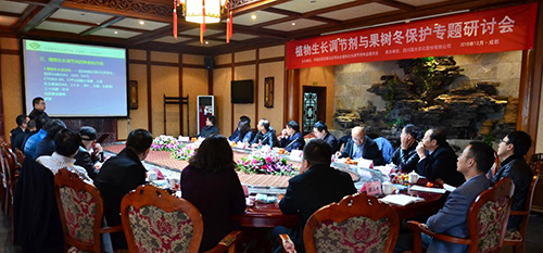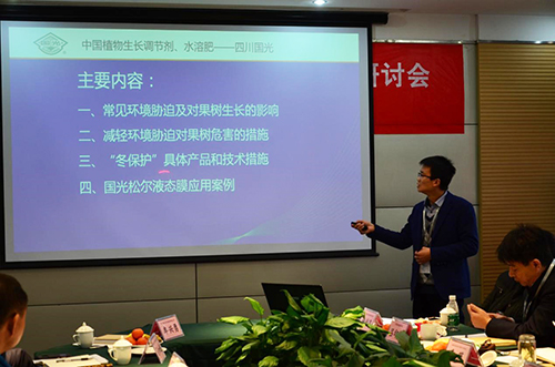 2016年12月3日,由中國(guó)農(nóng)藥發(fā)展與應(yīng)用協(xié)會(huì)植物生長(zhǎng)調(diào)節(jié)劑專業(yè)委員會(huì)主辦,國(guó)光股份承辦的“植物生長(zhǎng)調(diào)節(jié)劑新應(yīng)用、果樹冬保護(hù)專題研討會(huì)”在四川成都召開。全國(guó)農(nóng)業(yè)技術(shù)推廣服務(wù)中心農(nóng)藥與藥械處處長(zhǎng)王鳳樂(lè)、中國(guó)農(nóng)藥發(fā)展與應(yīng)用協(xié)會(huì)副秘書長(zhǎng)花榮軍、全國(guó)農(nóng)業(yè)技術(shù)推廣服務(wù)中心防治處高級(jí)農(nóng)藝師李萍、中國(guó)農(nóng)藥發(fā)展與應(yīng)用協(xié)會(huì)植物生長(zhǎng)調(diào)節(jié)劑專業(yè)委員會(huì)主任胡興啟、中國(guó)農(nóng)業(yè)大學(xué)農(nóng)學(xué)院教授、長(zhǎng)江學(xué)者、植物生長(zhǎng)調(diào)節(jié)劑專家段留生以及四川、河南、山東、江蘇、陜西、福建、湖南、湖北、廣西等省的省植保站站長(zhǎng)、省農(nóng)業(yè)科學(xué)院、林業(yè)科學(xué)院的研究員、教授等17人參加研討。