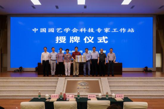 中國園藝學會副理事長王有年代表中國園藝學會向國光授予了科技專家工作站的牌匾,參會專家領導與國光眾高管進行了合影。