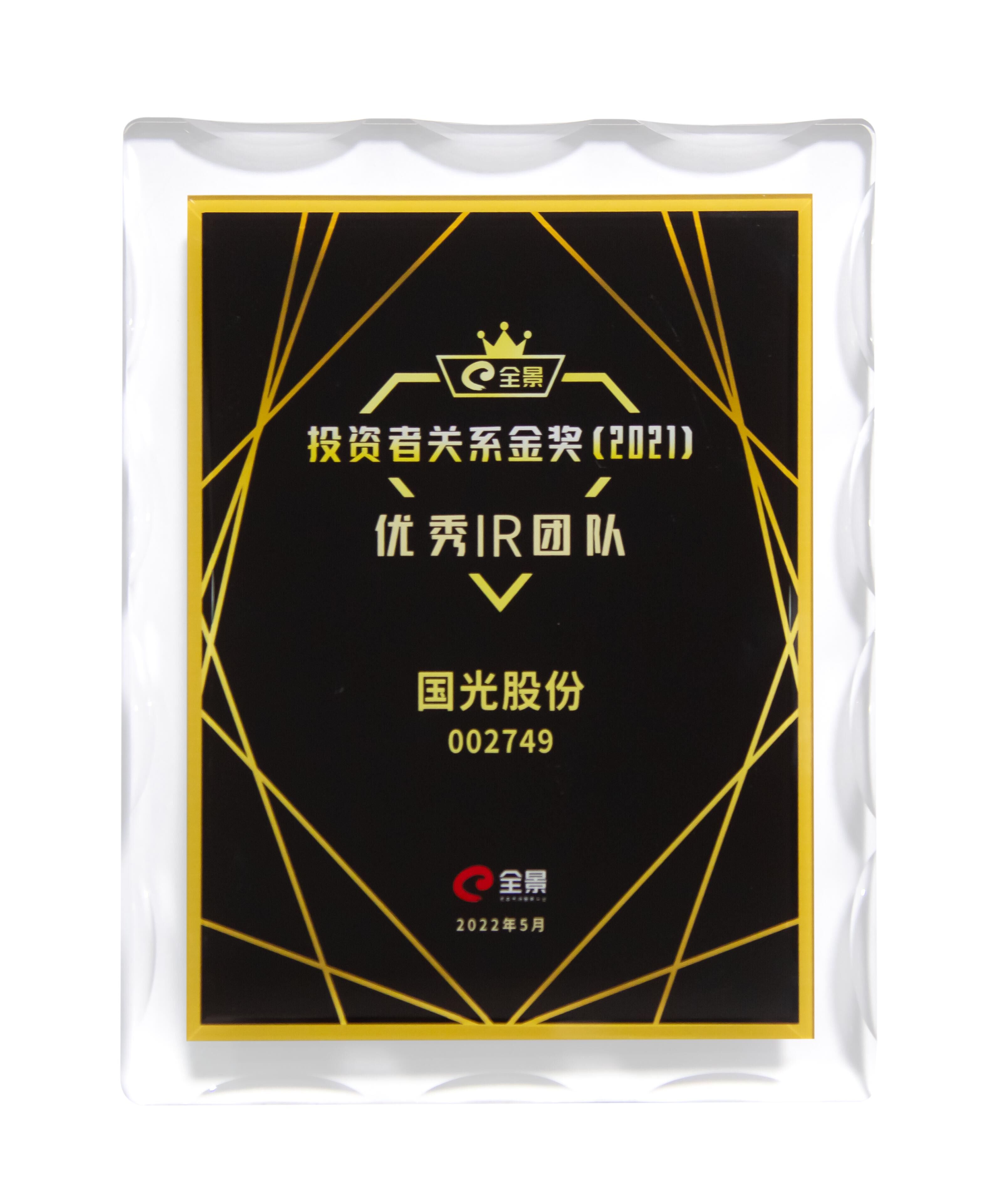 2022年5月13日,由深圳市全景網(wǎng)絡(luò)有限公司主辦、南開大學(xué)中國公司治理研究院參與推出的“全景投資者關(guān)系金獎”2021年度全國性評選,經(jīng)過專家顧問組最后環(huán)節(jié)的評審,獲獎榜單正式揭曉!國光股份(002749)榮獲“優(yōu)秀IR團隊”獎項!