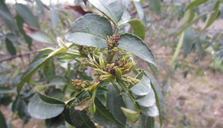 3、青花椒萌芽期,根系吸收能力較弱,通過葉面噴施藥劑促進(jìn)萌芽是非常有效的方式。但是在藥劑選擇與混配時一定要進(jìn)行多方面的考慮。使用的藥劑要具有幾個方面的作用:較好的附著能力、及時補(bǔ)充萌芽所需的養(yǎng)分、調(diào)控花芽與幼葉同時萌發(fā)。對于蟲害可根據(jù)當(dāng)?shù)氐膶?shí)際蟲害發(fā)生情況,在安全的條件下進(jìn)行添加。因前期低溫青花椒病害發(fā)生很少或者不擴(kuò)散,一般不建議使用殺菌劑。因此,葉面噴施促萌芽的藥劑推薦使用優(yōu)豐1500倍+稀施美800倍+植生源1500倍,根據(jù)當(dāng)?shù)叵x害發(fā)生的情況可適當(dāng)加入斃克1500倍和斃害克800倍防治蚜蟲和螨蟲危害。4、科學(xué)修剪:在萌芽前后應(yīng)及時清理弱枝、重疊枝、交叉枝,減少遮蔽、促進(jìn)通風(fēng)透光。豐產(chǎn)樹根據(jù)種植密度不同,長度80cm-120cm結(jié)果母枝的枝條保有量應(yīng)在60-120枝/株左右。對于結(jié)果母枝上的著生的分叉枝,應(yīng)進(jìn)行合理修剪。