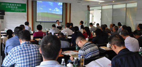2015年9月25日,由成都市森防總站主辦、國(guó)光協(xié)辦的2015年成都市森防工作培訓(xùn)會(huì)在國(guó)光召開(kāi)。成都市各區(qū)(市)縣森防分管領(lǐng)導(dǎo)、森防站長(zhǎng)、工作人員及國(guó)光股份相關(guān)技術(shù)代表共70余人參會(huì)。