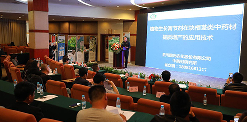 在專家座談中,四川省中藥行業(yè)協(xié)會會長石才金;四川大學華西藥學院教授張浩;四川省中醫(yī)藥科學院教授舒光明;四川農業(yè)大學教授田孟良;四川省農科院經作所研究員張超;四川省農業(yè)廳高級農藝師李濤等領導、專家作了專題演講,國光作物調控技術研究院中藥材所負責人就植物生長調節(jié)劑在塊根莖類中藥材提質增產的應用技術進行了分享。