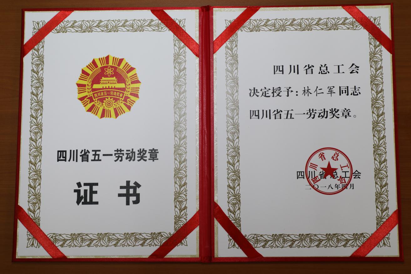 由于工作勤奮努力,成績突出,林師傅連續(xù)十五年被公司評為先進管理人員。2017年更是獲得成都市“五一勞動獎章”。