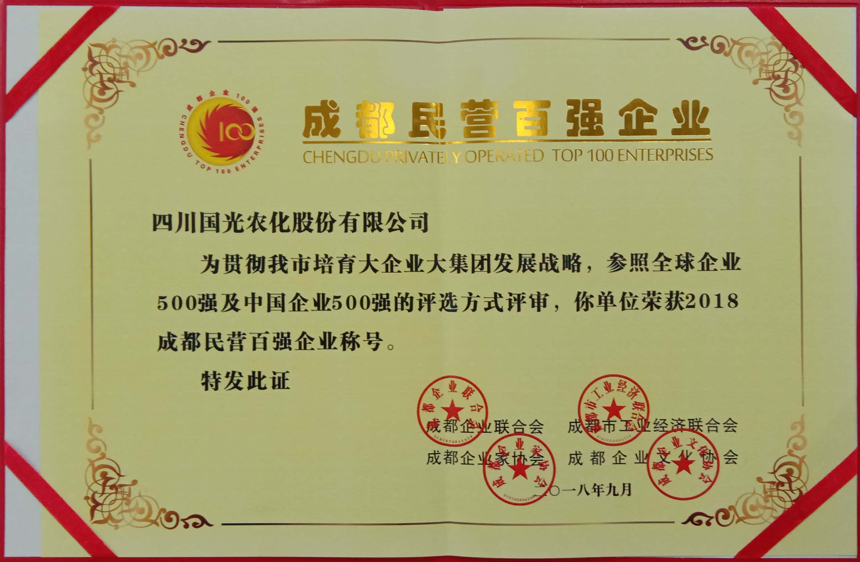 國光股份憑借優(yōu)異經(jīng)營業(yè)績和強(qiáng)勁增長勢頭,獲得“2018成都企業(yè)100強(qiáng)”榮譽(yù)稱號。