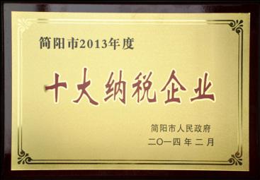 公司獲評(píng)簡(jiǎn)陽(yáng)市2013年度十大納稅企業(yè)