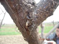 (3)春季管理:枝蔓發(fā)病,剪除枝條;主桿發(fā)病,刮除病斑,涂抹殺細(xì)菌藥劑。若發(fā)病過(guò)于嚴(yán)重,將挖除植株,當(dāng)場(chǎng)燒毀。
