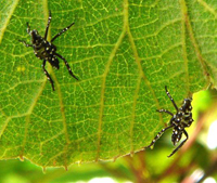 若蟲(chóng)或成蟲(chóng)用嘴刺吸汁液,使葉片出現(xiàn)淡白色斑點(diǎn),危害嚴(yán)重時(shí)斑點(diǎn)呈斑塊狀,或刺傷表皮,使枝條葉片枯萎。